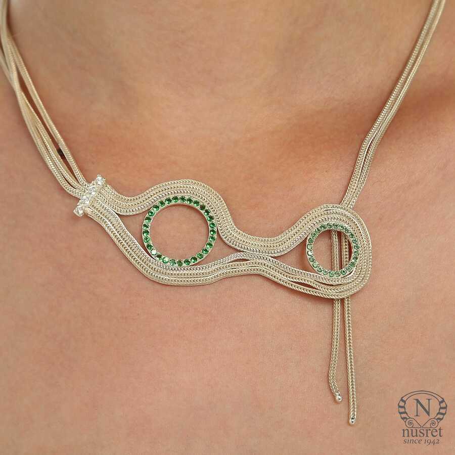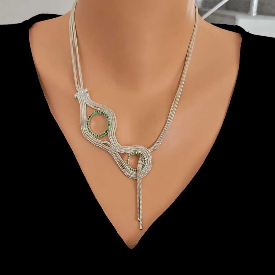 925 ayar gümüş 43 cm yeşil zirkon taşlı, tilki kuyruğu zincirli kolye. Gramı: 19,45 gr