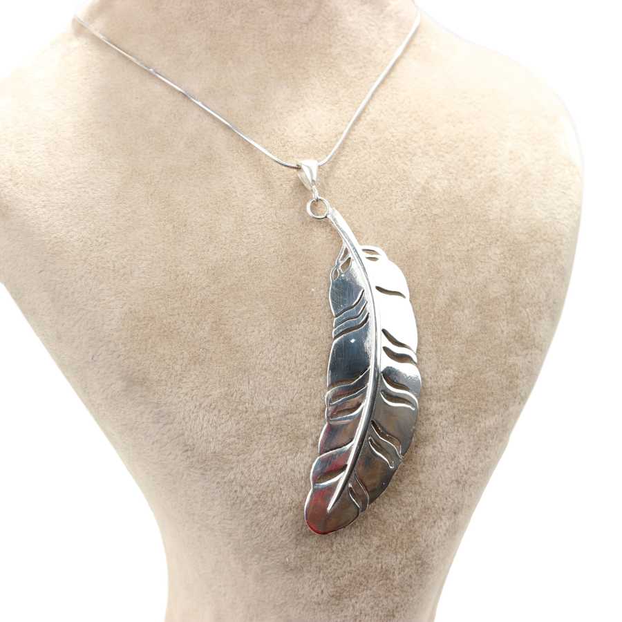 Gümüş kolye 925 ayar gümüşten yapılmıştır. Büyük yaprak kolye 7,8 cm'ye 2,0 cm boyutlarındadır. Kolye yılan zincirli 50 cm uzunluğundadır. Kolye taşsızdır. Ağırlığı 9,05 gramdır.