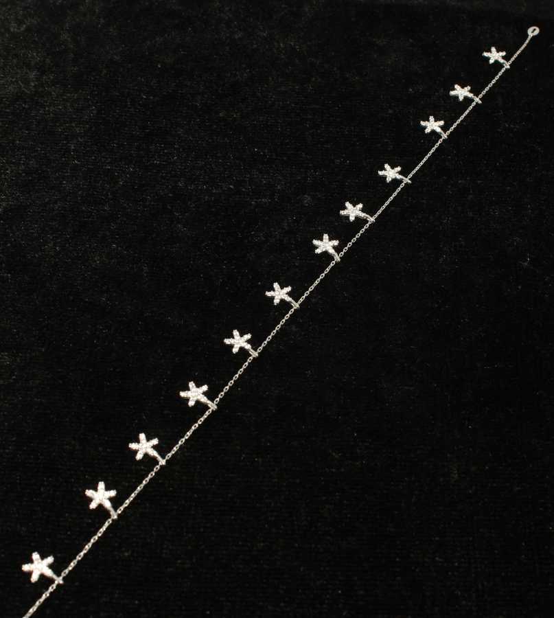 Bu mücevher parçası 925 ayar gümüşten imal edilmiştir. Halhal 26 cm uzunluğundadır ve 12 adet yıldız figüründen oluşmaktadır. Uzatma zinciri ile 28 cm'ye kadar uzatılabilir. Halhal zirkon taşlıdır. Halhalın ağırlığı 3,76 gramdır.