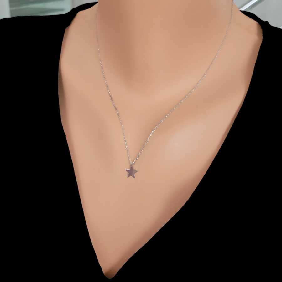 Gümüş kolye 925 ayar gümüşten yapılmıştır. Gümüş kolye 45 cm uzunluğundadır. Yıldız kolye 1 cm boyutlarındadır. Kolye taşsızdır. Ağırlığı 1,3 gramdır.
