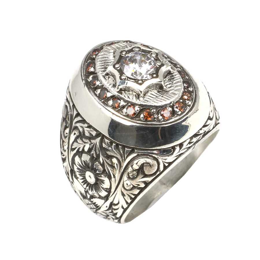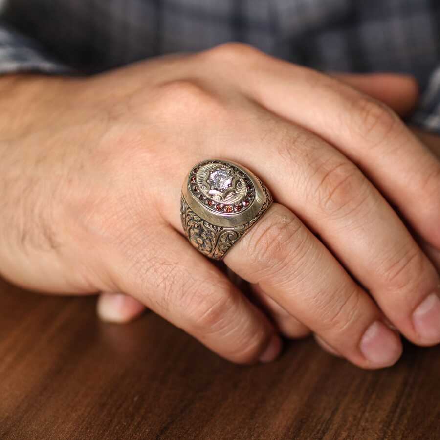 925 Ayar Gümüş Yıldız Taşlı Kalemli Erkek Yüzüğü