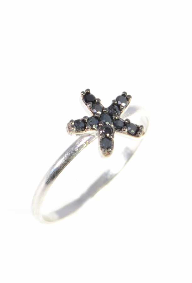 Yüzük 925 ayar gümüşten üretilmiştir. Minik yıldız şeklindeki yüzük 5 ölçüdür. Tüm ölçüler yapılabilmektedir. Yüzük siyah zirkon taşlara sahiptir. Yıldız şeklindeki parça 0,7 cm boyutlarındadır. Ağırlığı 0,54 gramdır.