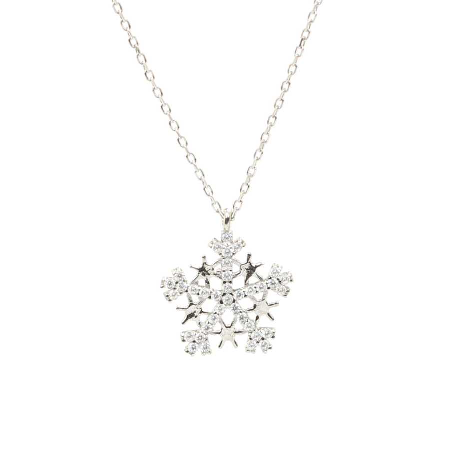 925 Sterling Silver Star Snowflake Necklace with Black CZ