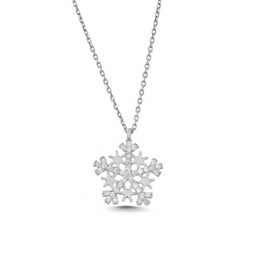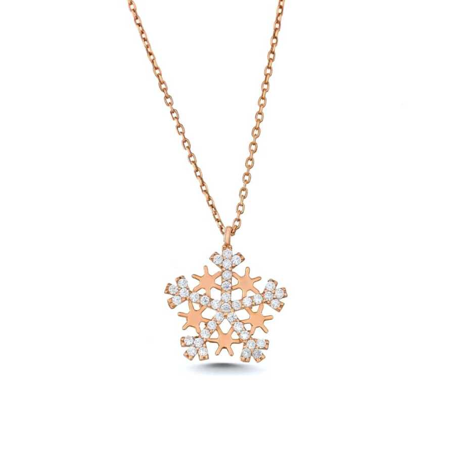 WHYL093 - 925 Ayar Gümüş Yıldızlı Kar Tanesi Kolye, Pembe - Beyaz Taş