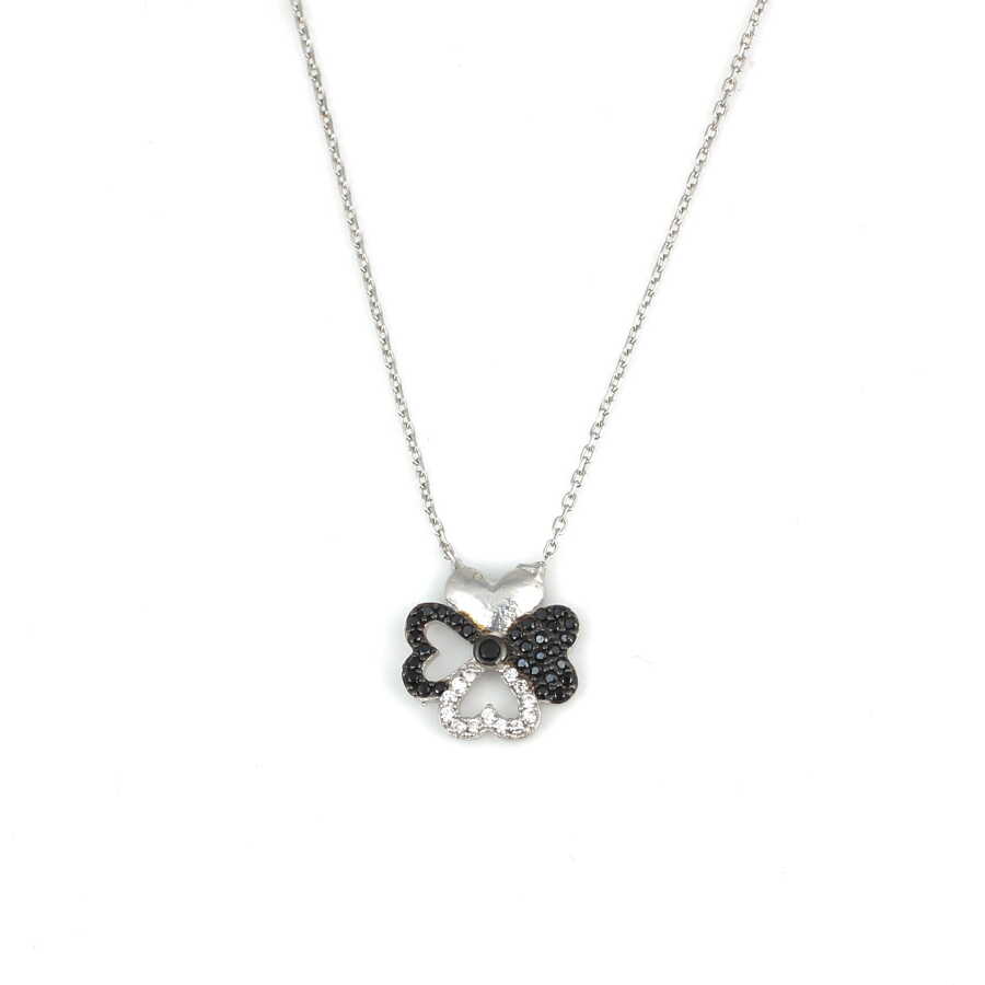 Gelince Haber VerŞans, sevgi ve zarafeti aynı tasarımda buluşturan 925 ayar gümüş taşlı yonca kalp kolye, estetik formu ve göz alıcı detaylarıyla öne çıkar. Yonca figürünü oluşturan kalp formları, kolyeye romantik ve anlam yüklü bir duruş kazandırırken; siyah ve beyaz taşların kontrastı tasarıma modern ve sofistike bir hava katar.