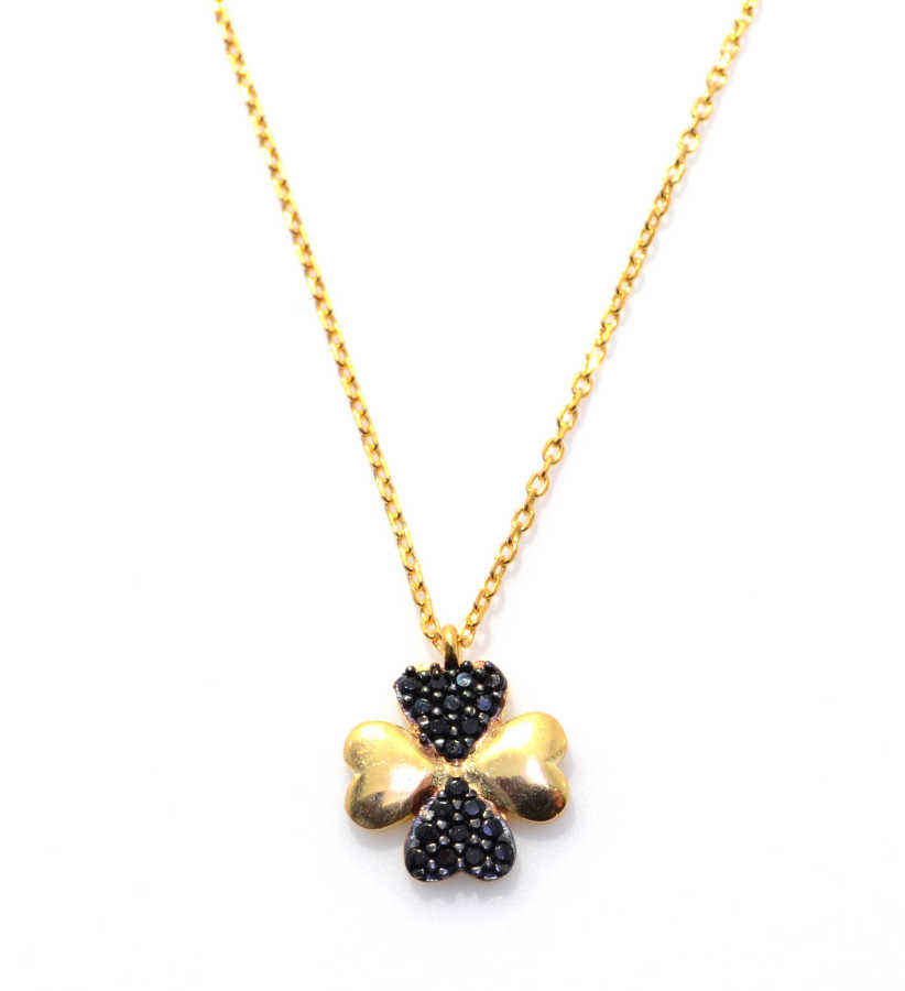 Gelince Haber Ver Şans, sevgi ve zarafeti tek bir tasarımda buluşturan 925 ayar gümüş siyah taşlı yonca kalp kolye, estetik formu ve dikkat çekici detaylarıyla öne çıkar. Yonca figürünü oluşturan kalp formu, tasarıma romantik ve duygusal bir anlam katarken, siyah taşlarla bezeli yüzeyi kolyeye modern ve sofistike bir hava kazandırır.