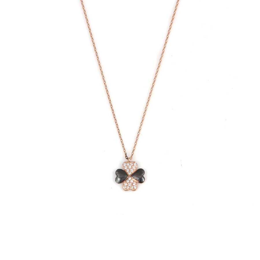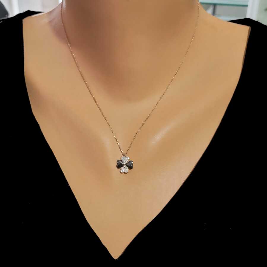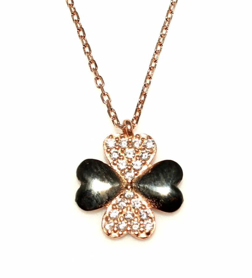 925 ayar gümüştür. Madalyon boyutu: 1,2 cm'e 1,2 cm'dir. Zincir boyu : 41 cm'dir, pembe siyah-taşlar beyaz zirkondur Gramı: 1,7 gr