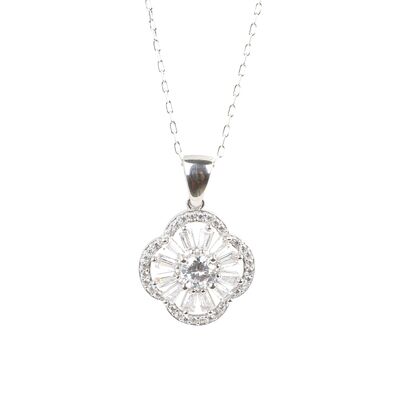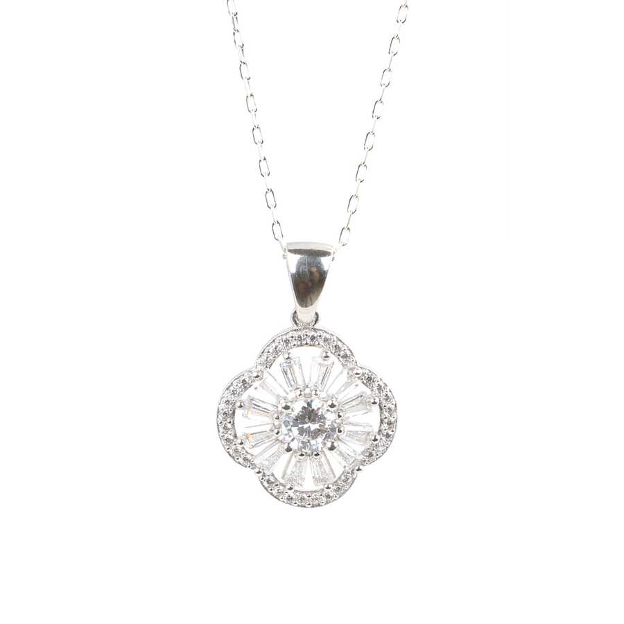 925 Ayar Gümüş Yonca Modeli Baget ve Zirkon Taşlı Kolye