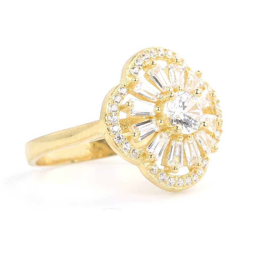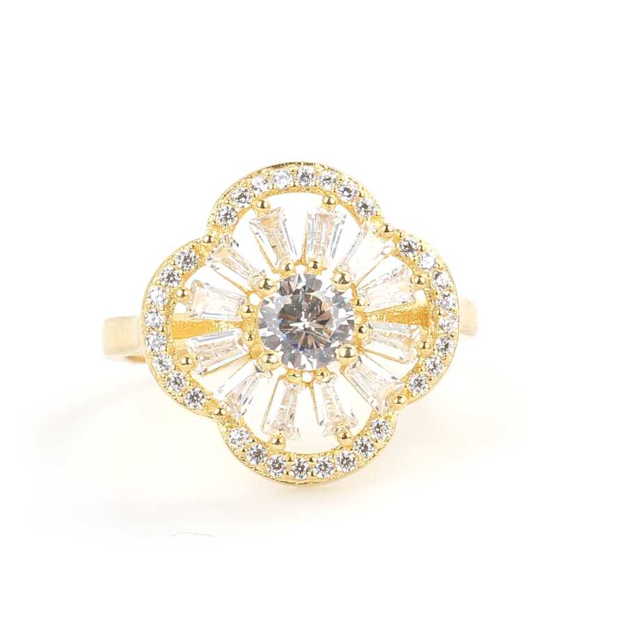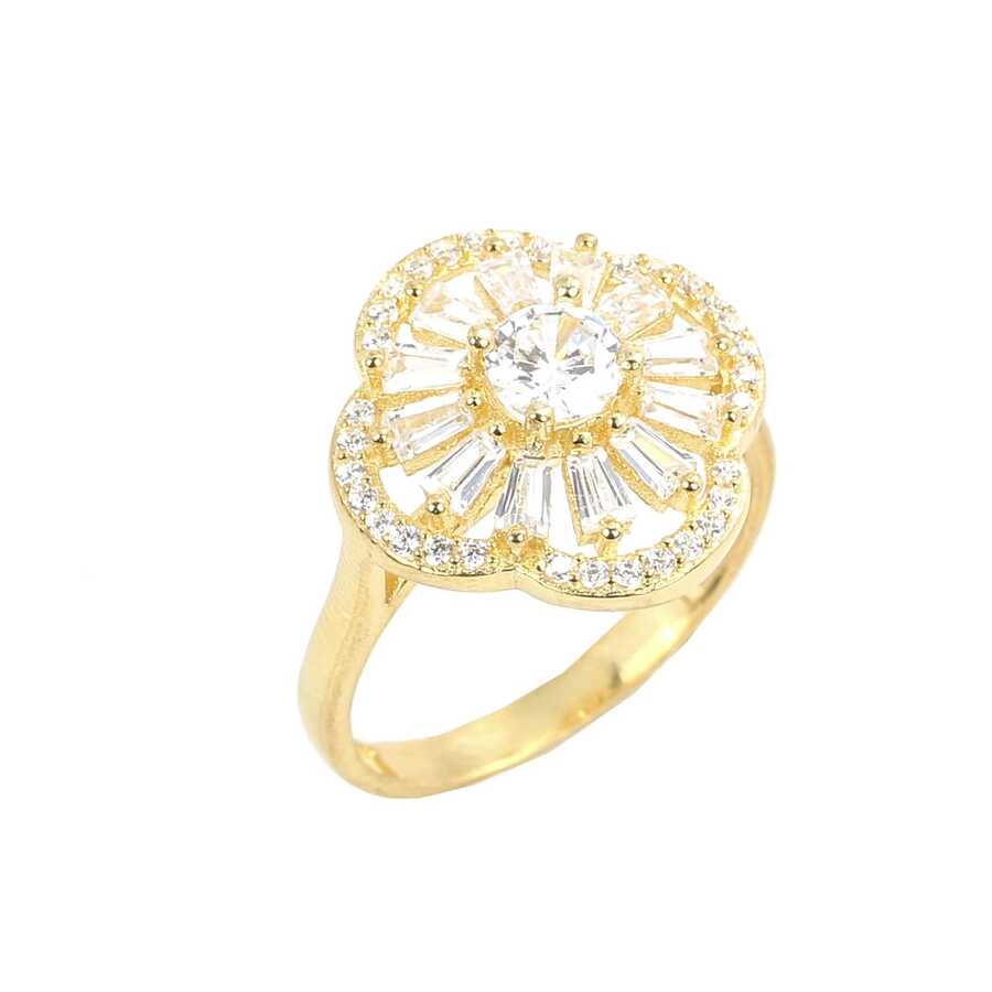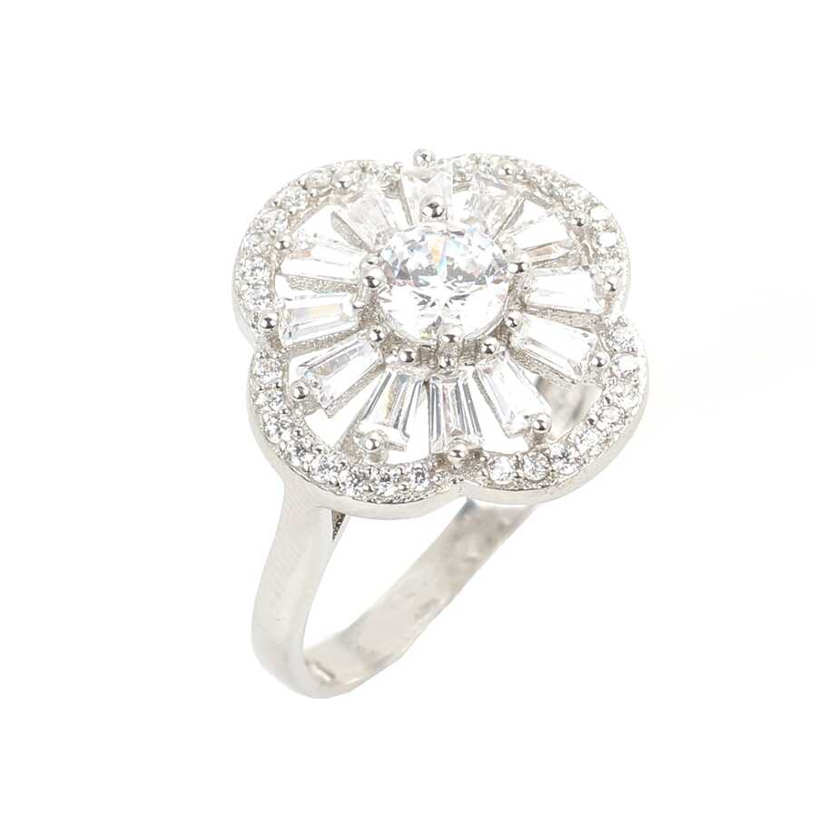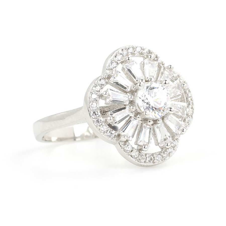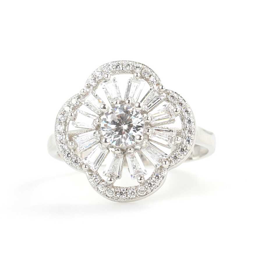 925 Ayar Gümüş Yonca Modeli Baget ve Zirkon Taşlı Yüzük
