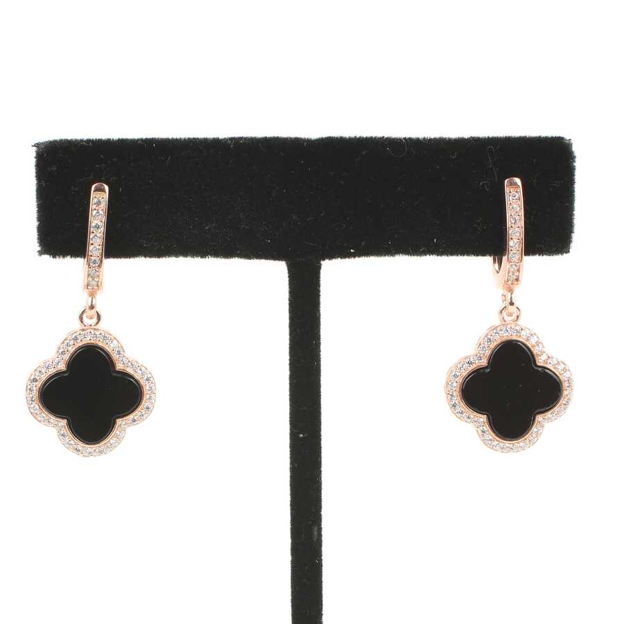925 Ayar Gümüş Yonca Modeli Oniks ve Zirkon Taşlı Küpe