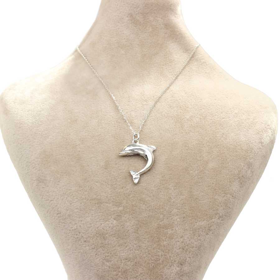 Gümüş kolye 925 ayar gümüşten yapılmıştır. Yunus hayvan figürü şeklindeki kolye 2,1 cm'ye 1,6 cm boyutlarındadır. Zinciri 45 cm uzunluğundadır ve taşsızdır. Ağırlığı 2,64 gramdır.