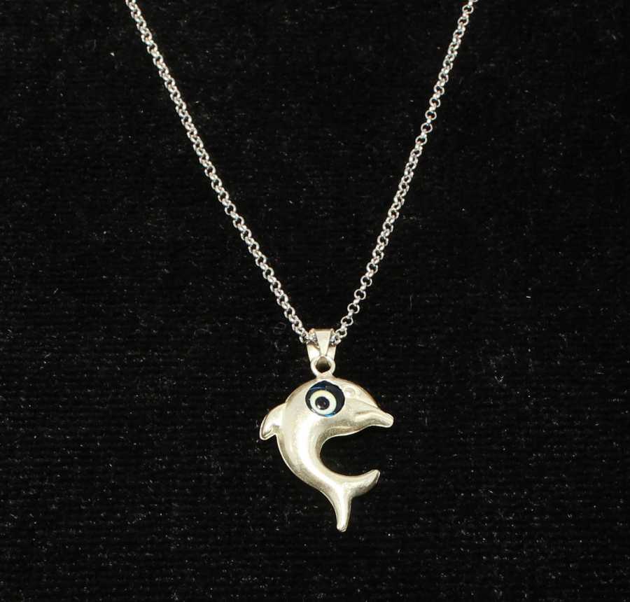 925 Ayar Gümüş Yunus ortası nazar boncukla 45 cm zincirli kolye. Gramı: 4,64 gr