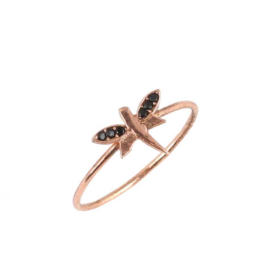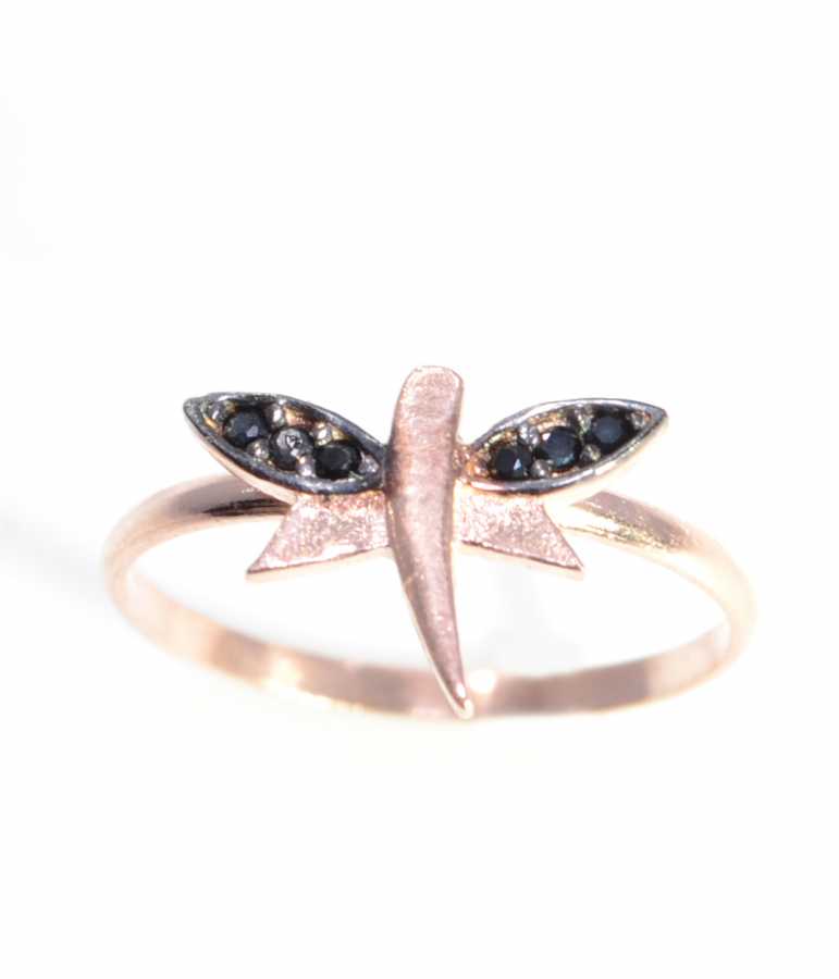 Yüzük 925 ayar gümüşten üretilmiştir. Minik yusufçuk şeklindeki yüzük 4 ölçüdür. Tüm ölçüler yapılabilmektedir. Yüzük siyah zirkon taşlara sahiptir. Ağırlığı 0,62 gramdır.