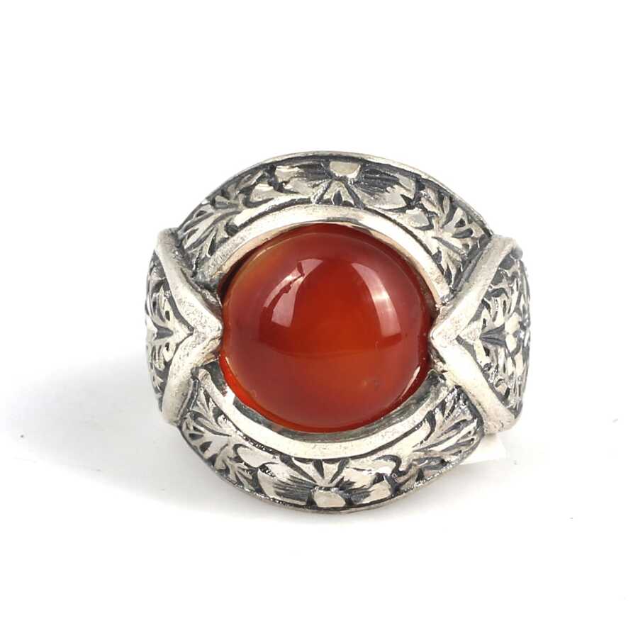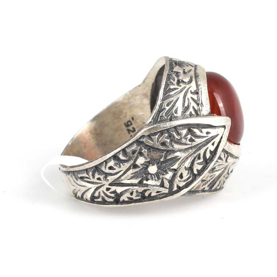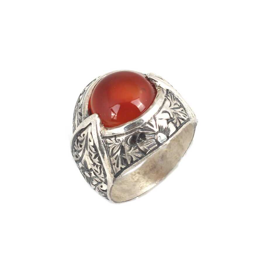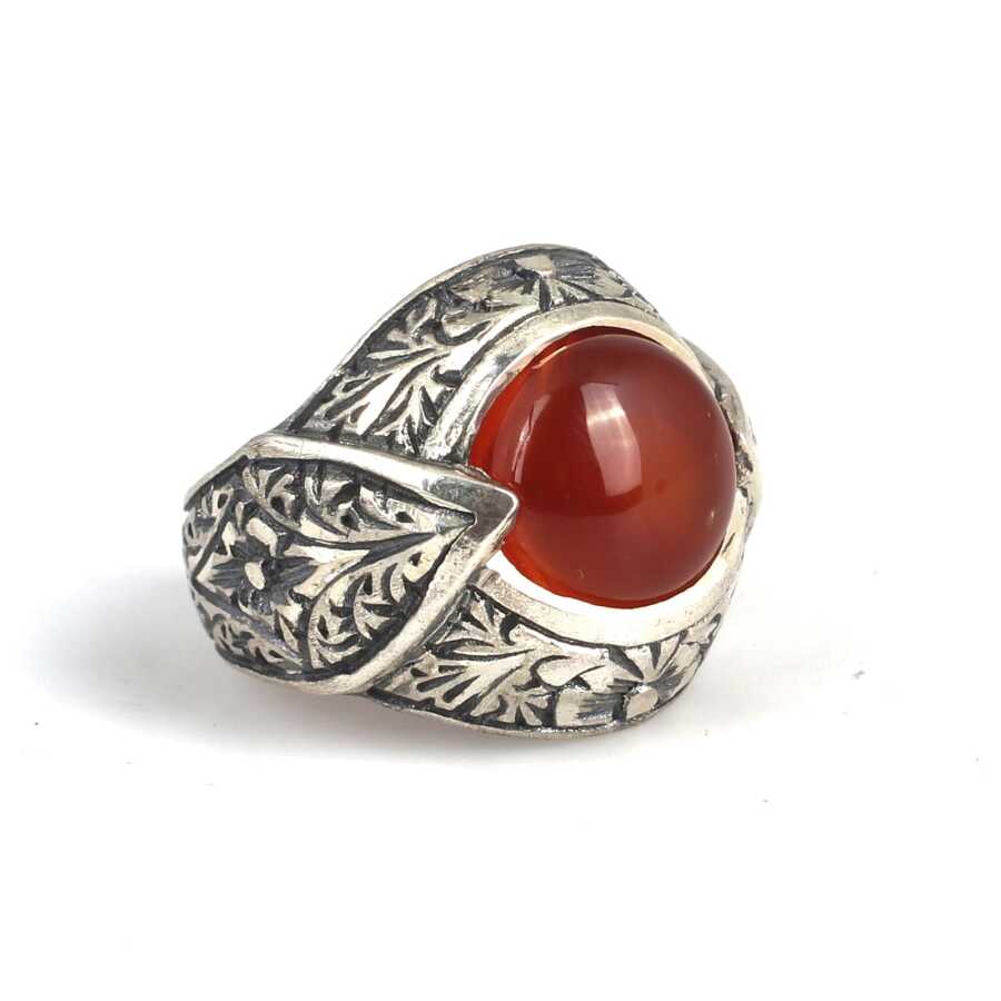 925 Ayar Gümüş Yuvarlak Akik Taşlı Kalemli Erkek Yüzük