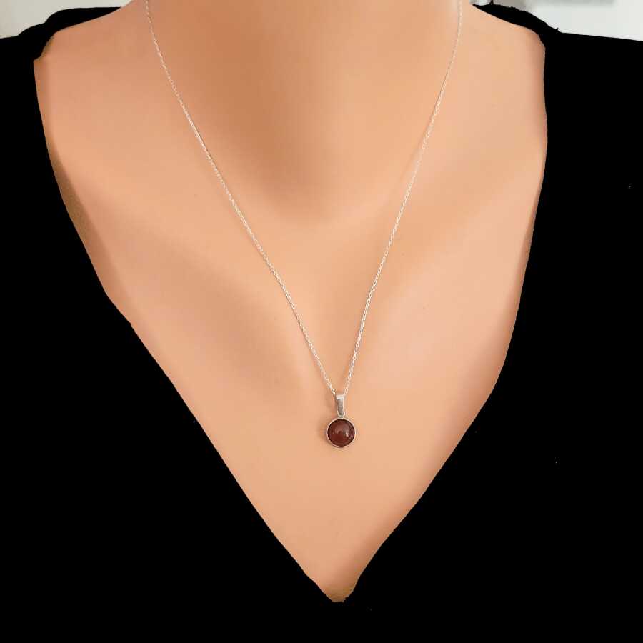 Gümüş kolye 925 ayar gümüşten yapılmıştır. Akik taşlı kolye tepelik dahil 1,7 x 1,0 cm boyutlarındadır. Kolye 42 cm uzunluğundadır. Kolye akik taşlıdır. Ağırlığı 2,53 gramdır.