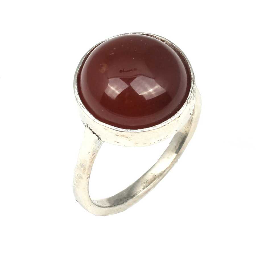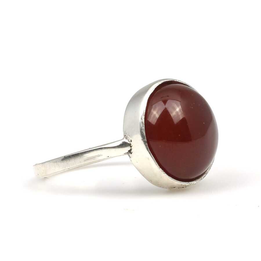 925 Ayar Gümüş Yuvarlak Akik Taşlı Yüzük