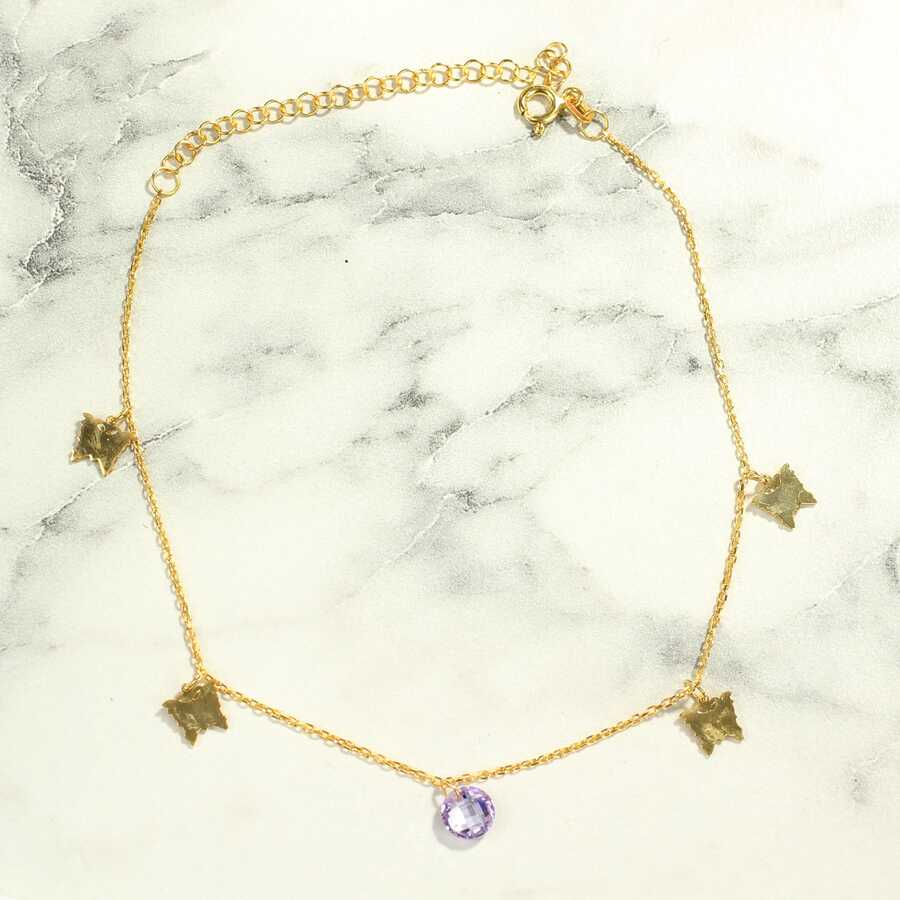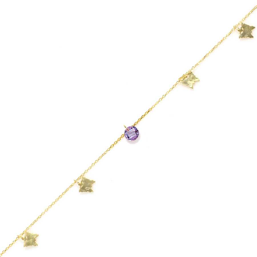 925 ayar gümüştür. Yuvarlak Ametist taşlı 4 adet kelebek modelinden oluşan halhalın uzunluğu: 20,5 cm + 5 cm uzatma zinciri vardır. Sarı renktedir. Gramı: 1,77 gr925 Ayar Gümüş Yuvarlak Ametist Taşlı Kelebek Halhal