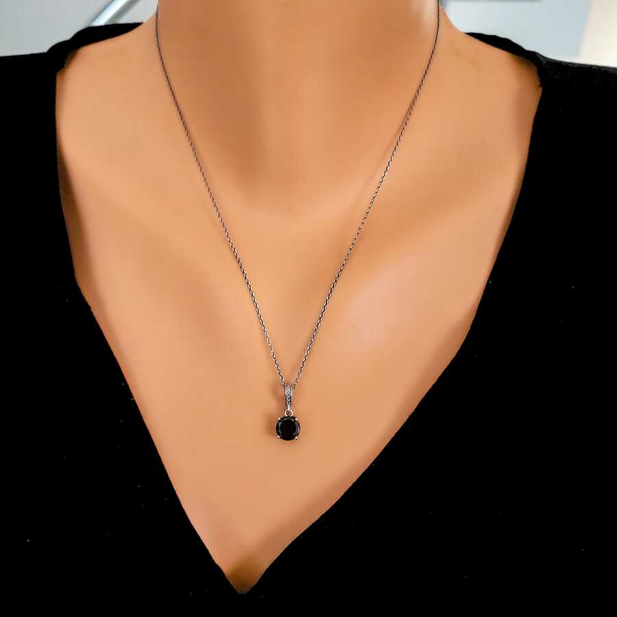 925 Ayar Gümüş Yuvarlak Büyük Boy Oniks Taşlı Kolye