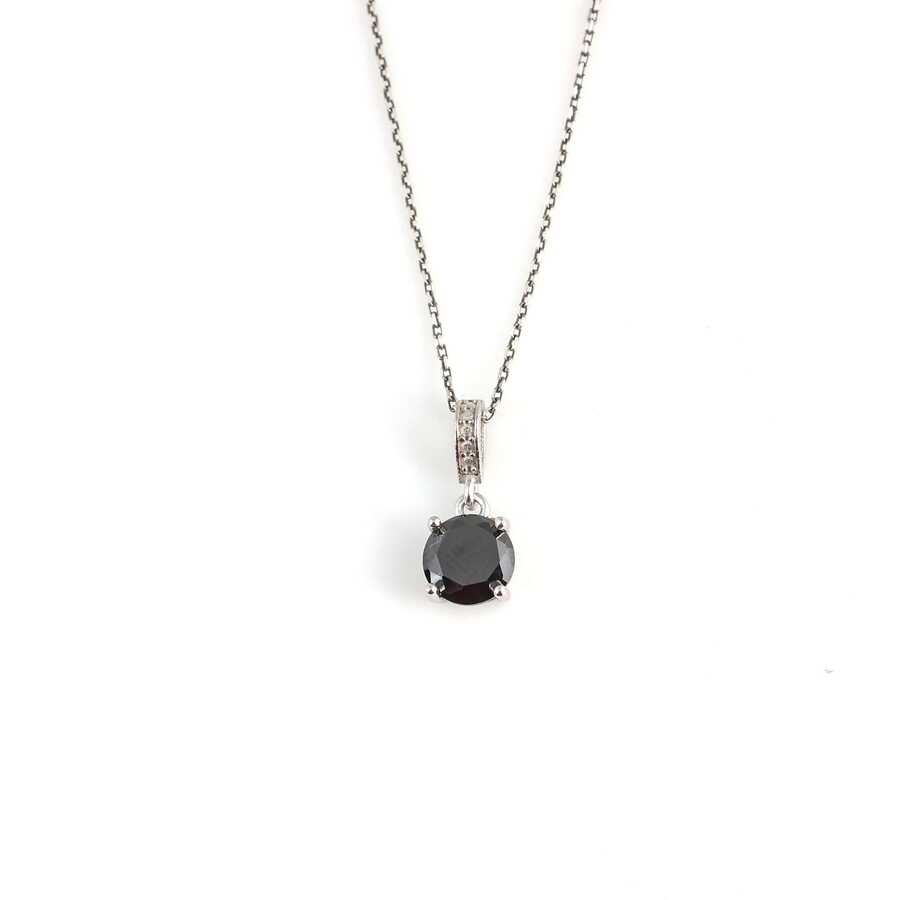 Gümüş kolye 925 ayar gümüşten yapılmıştır. Yuvarlak model kolye 0,8 cm boyutlarındadır. Gümüş kolye 45 cm uzunluğundadır. Kolye oniks renk zirkon taşlıdır. Gümüş renklidir. Ağırlığı 2,73 gramdır.