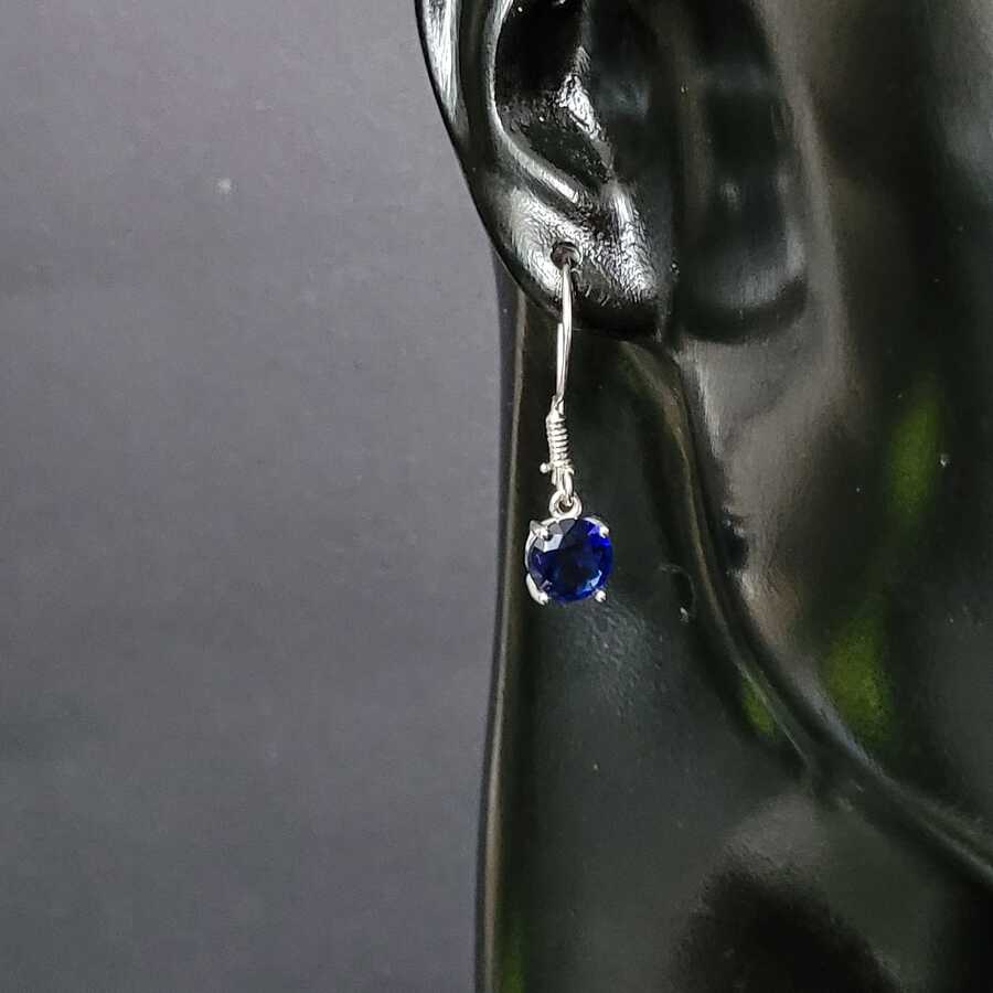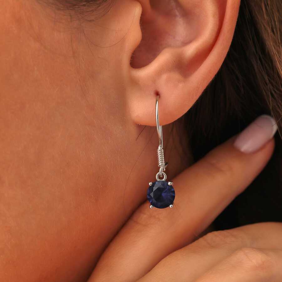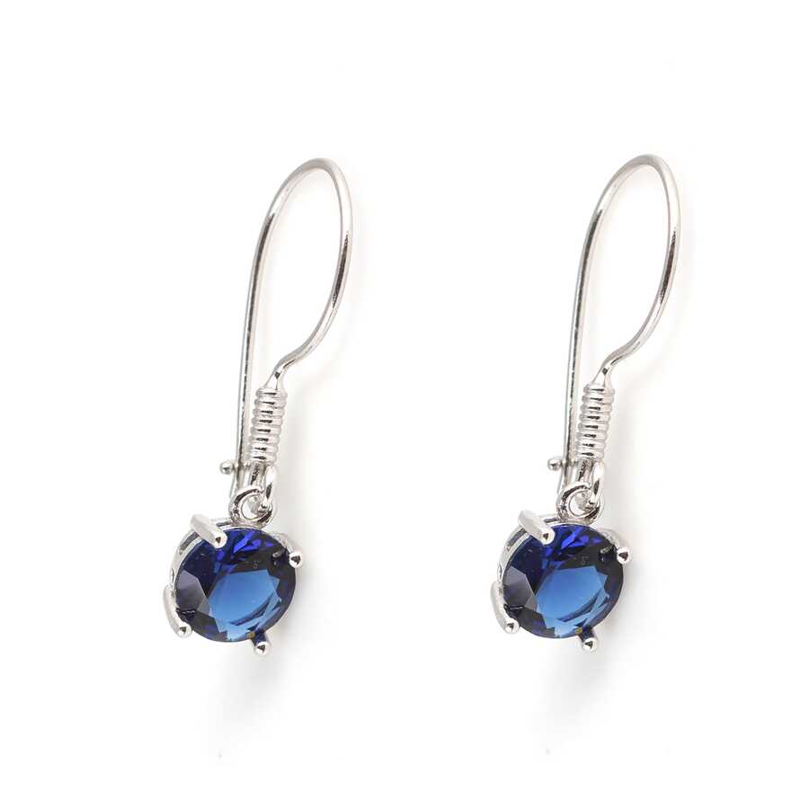 Gümüş küpe 925 ayar gümüşten yapılmıştır. Yuvarlak şeklindeki sallantılı küpe 0,8 cm boyutlarındadır. Küpe safir renk zirkon taşlıdır. Ürün gümüş rengidir. Diğer renkler için bizimle iletişime geçebilirsiniz. Ağırlığı 2,55 gramdır.