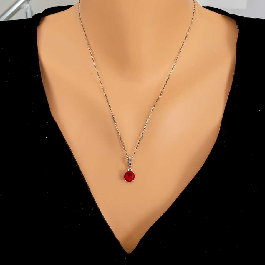 925 Ayar Gümüş Yuvarlak Büyük Boy Sentetik Yakut Taşlı Kolye