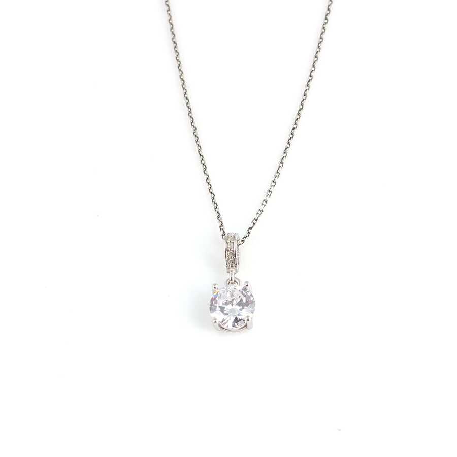 925 Ayar Gümüş Yuvarlak Büyük Boy Zirkon Taşlı Kolye