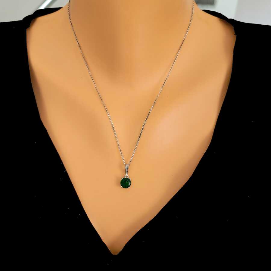 925 Ayar Gümüş Yuvarlak Büyük Boy Zümrüt Taşlı Kolye
