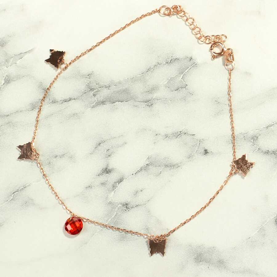 925 ayar gümüştür. Yuvarlak Garnet taşlı 4 adet kelebek modelden oluşan halhalın uzunluğu: 20,5 cm + 3 cm uzatma zinciri vardır. Pembe renktedir. Gramı: 1,77 gr925 Ayar Gümüş Yuvarlak Garnet Taşlı Kelebek Model Halhal