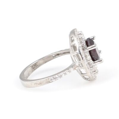 Gelince Haber Ver Gümüş yüzük 925 ayar gümüşten yapılmıştır. Yuvarlak çift sıra anturaj model yüzüğün üst kısmı 1,6 cm boyutlarındadır. Garnet taşı 0,8 cm boyutlarındadır. Küpe beyaz ve garnet zirkon taşlıdır. Yüzük 13 ölçüdür. Tüm ölçüler yapılabilmektedir. Ağırlığı 3,8 gramdır.