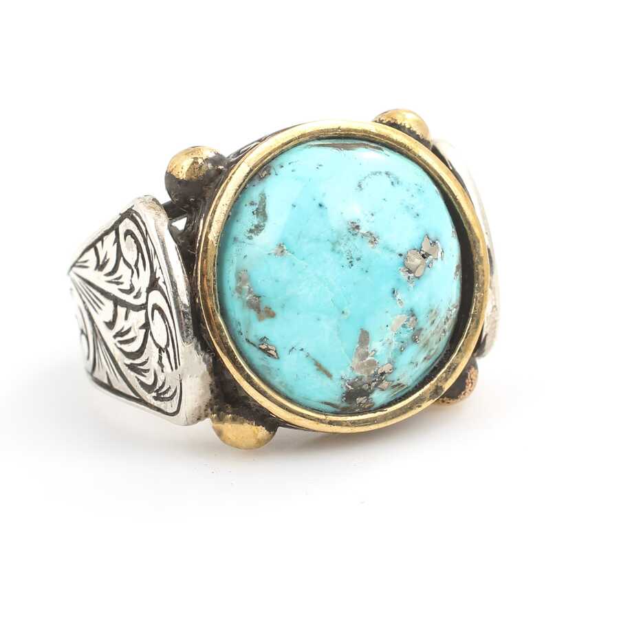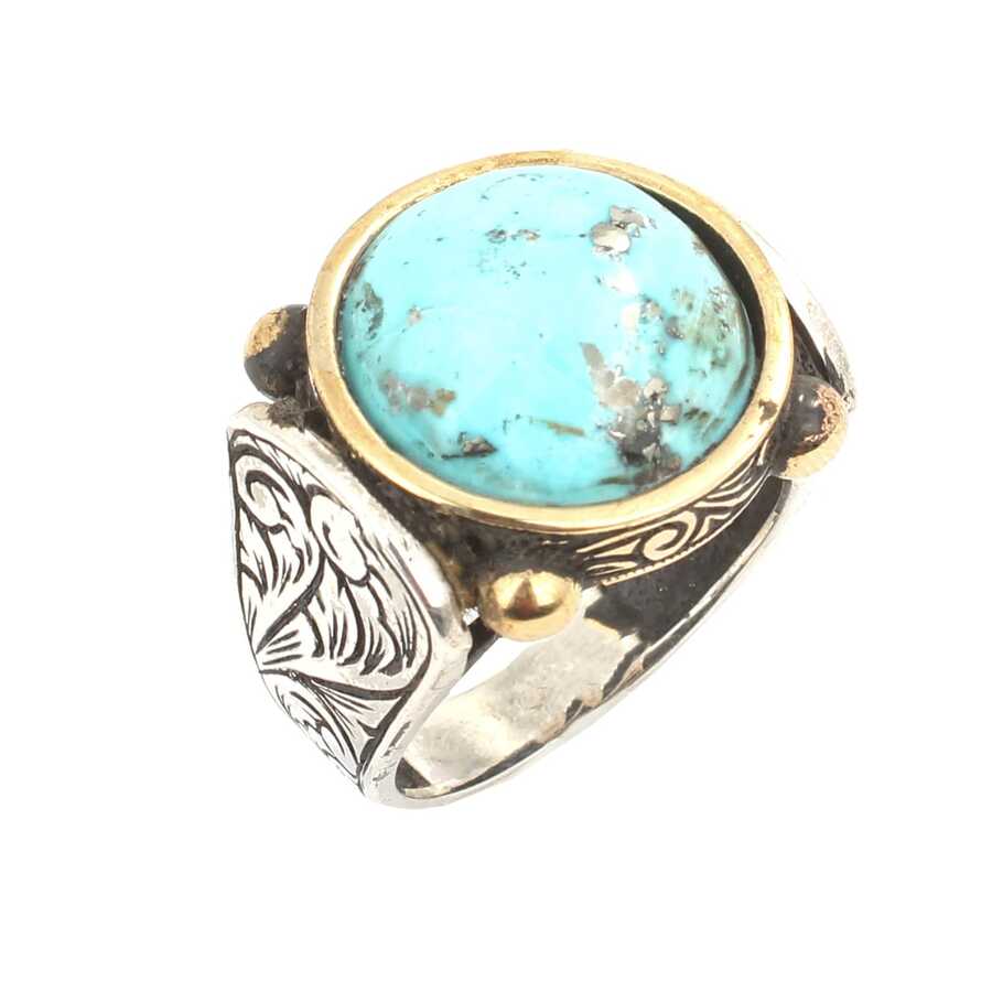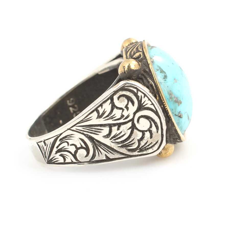 925 Ayar Gümüş Yuvarlak Gerçek Turkuaz Taşlı Erkek Yüzüğü