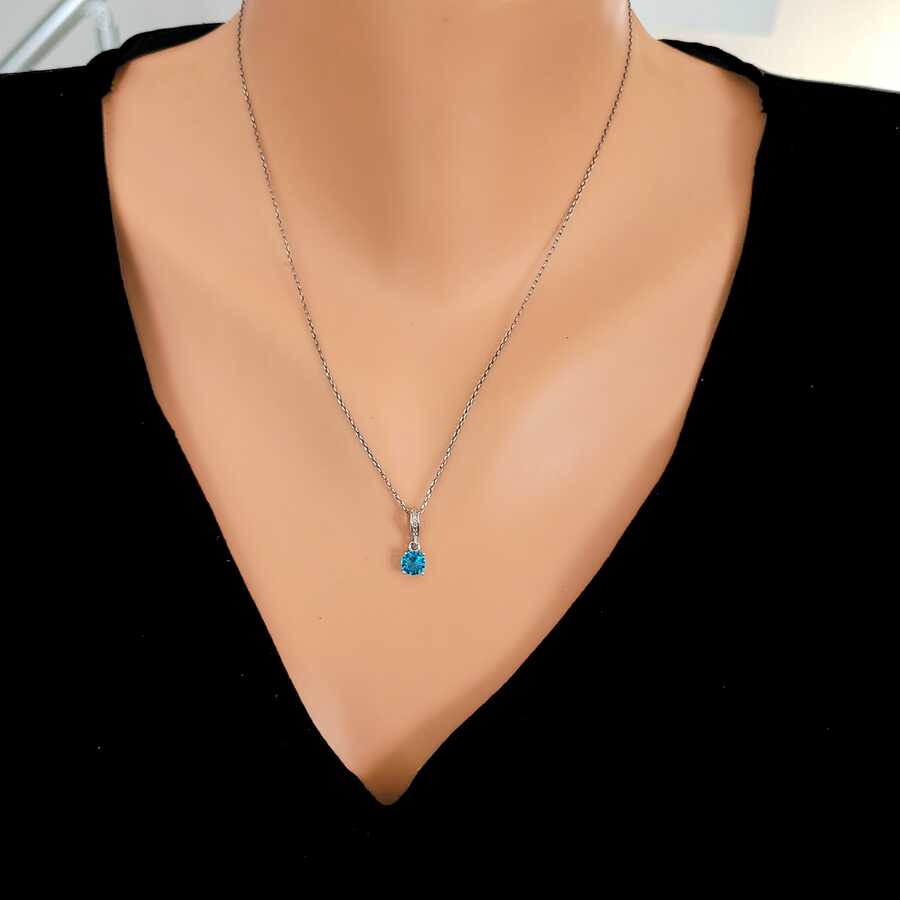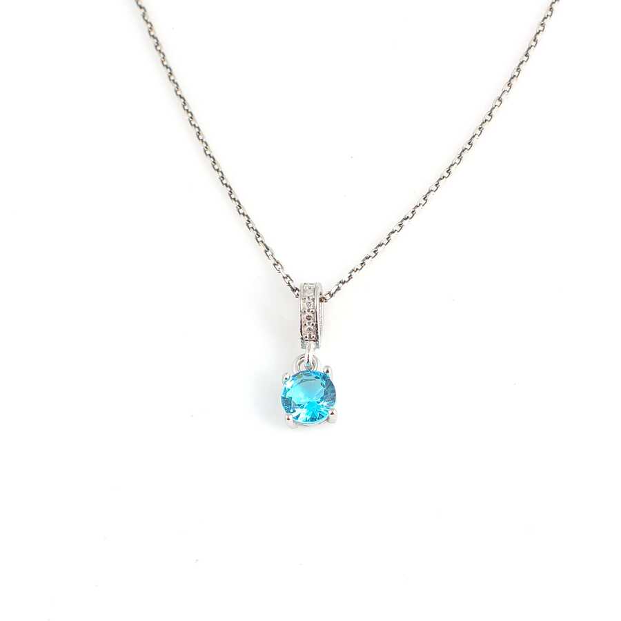 925 Ayar Gümüş Yuvarlak Küçük Boy Akuamarin Taşlı Kolye