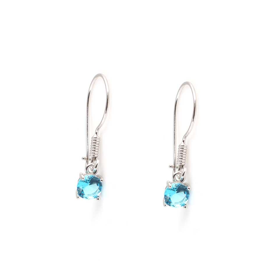 Gümüş küpe 925 ayar gümüşten yapılmıştır. Yuvarlak şeklindeki sallantılı küpe 0,6 cm boyutlarındadır. Küpe akuamarin renk zirkon taşlıdır. Ürün gümüş rengidir. Diğer renkler için bizimle iletişime geçebilirsiniz. Ağırlığı 1,77 gramdır.