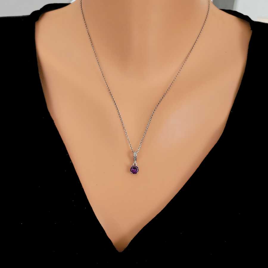 925 Ayar Gümüş Yuvarlak Büyük Boy Ametist Taşlı Kolye