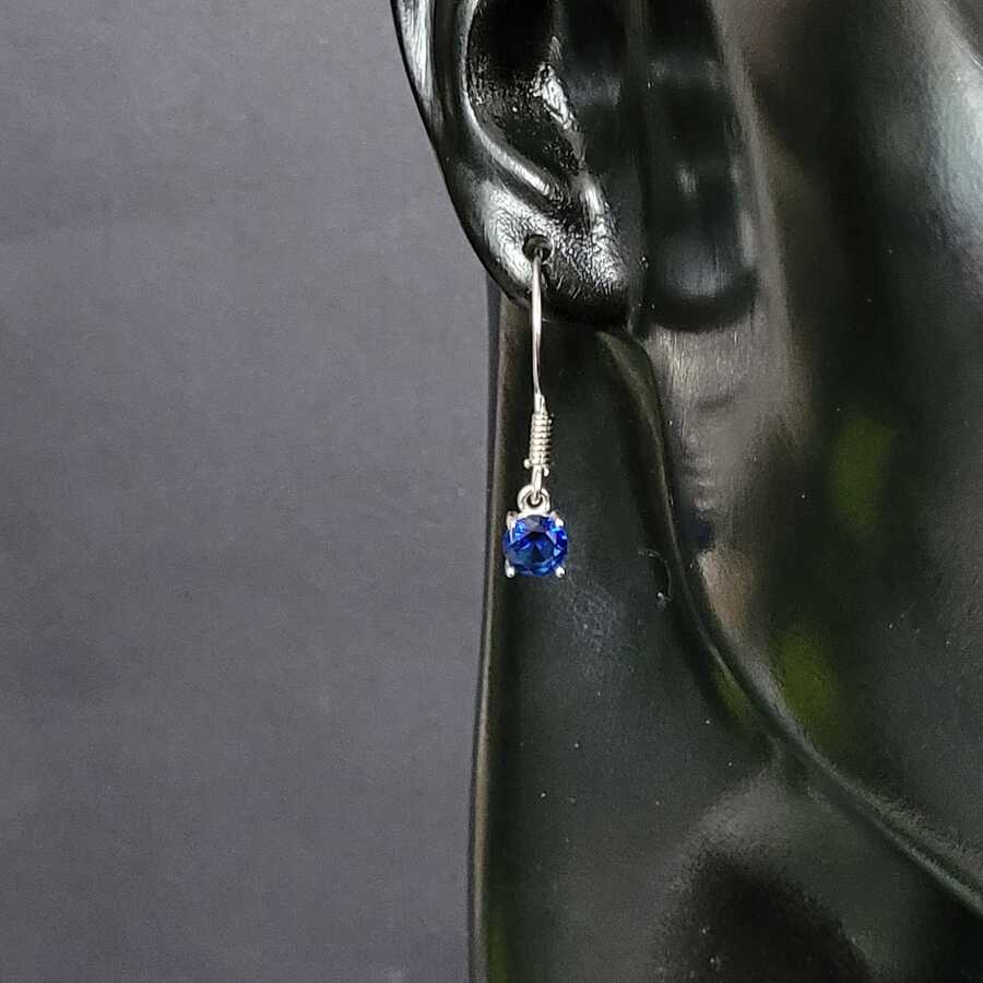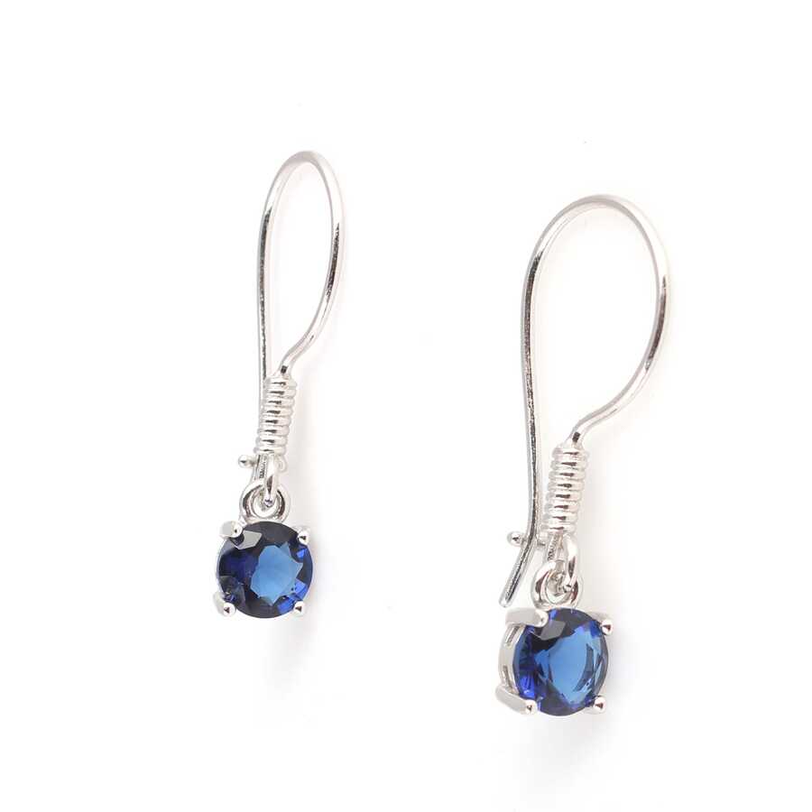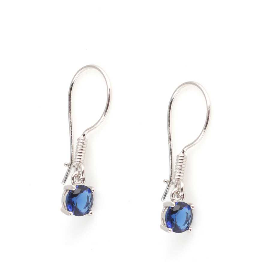 Gümüş küpe 925 ayar gümüşten yapılmıştır. Yuvarlak şeklindeki sallantılı küpe 0,6 cm boyutlarındadır. Küpe safir renk zirkon taşlıdır. Ürün gümüş rengidir. Diğer renkler için bizimle iletişime geçebilirsiniz. Ağırlığı 1,78 gramdır.