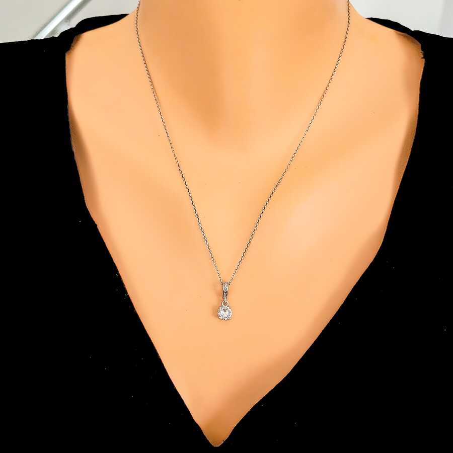 925 Ayar Gümüş Yuvarlak Küçük Zirkon Taşlı Kolye
