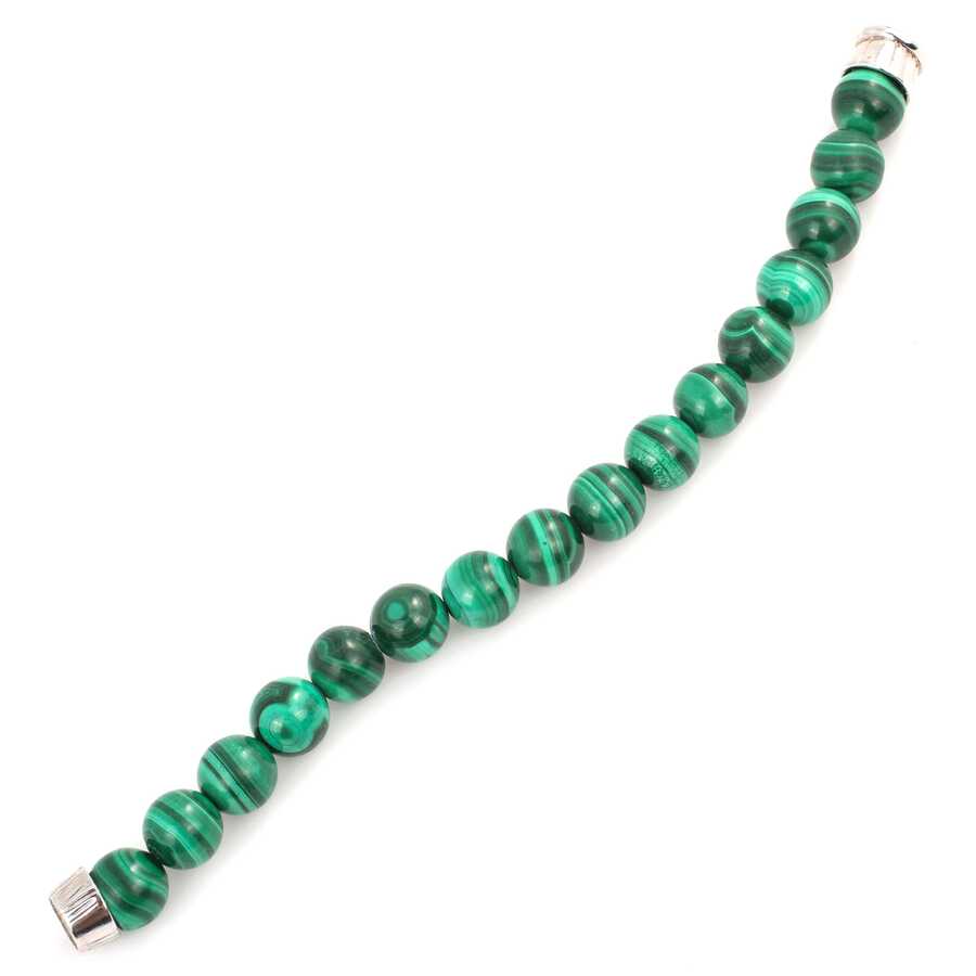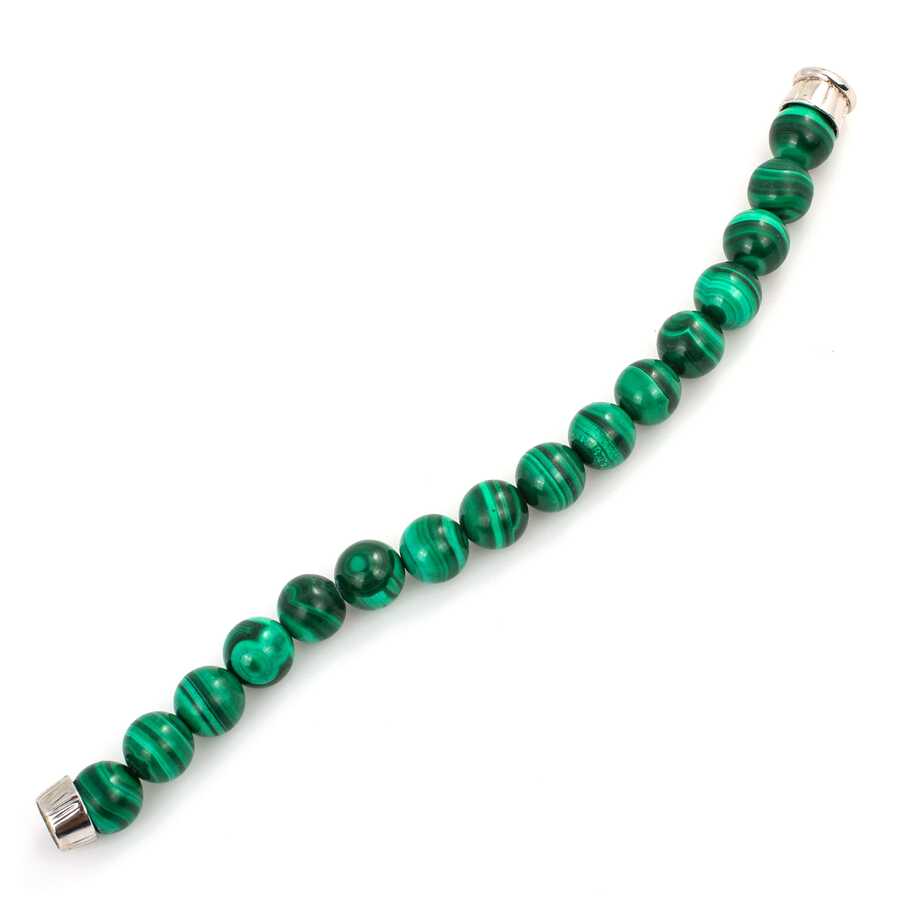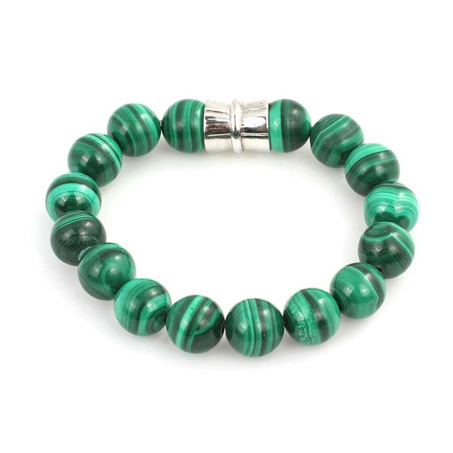 925 Ayar Gümüş Yuvarlak Malakit Taşlı Bileklik