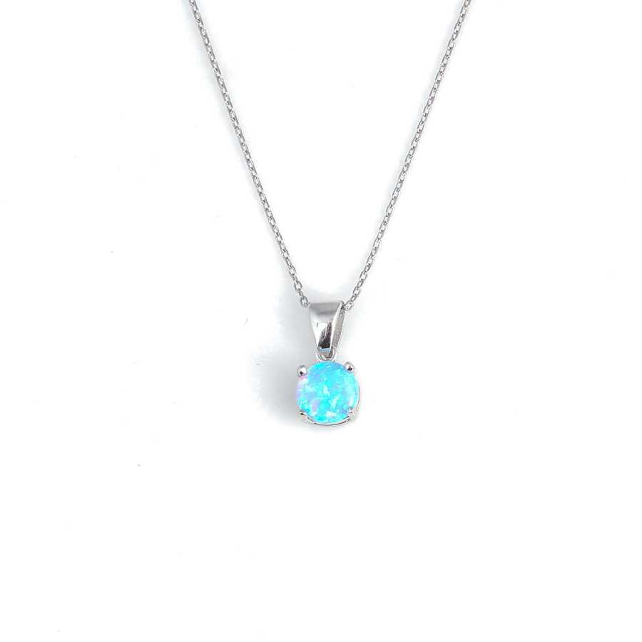 925 Ayar Gümüş Yuvarlak Mavi Opal Taşlı Kolye