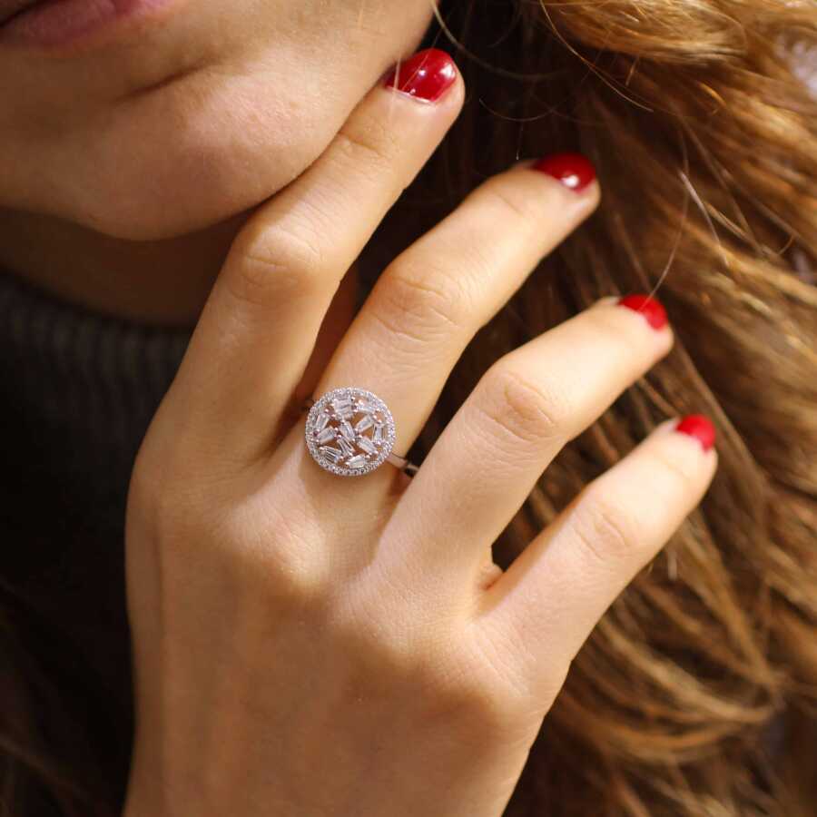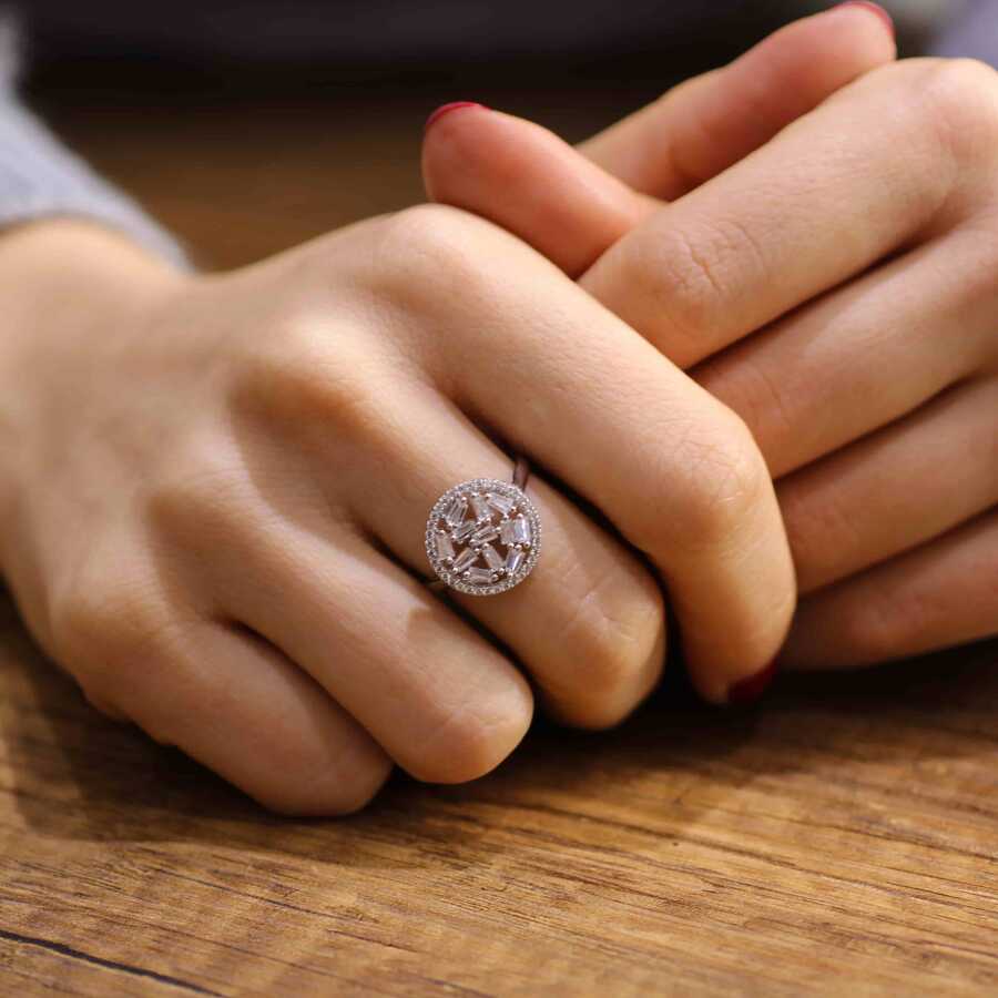 925 Ayar Gümüş Yuvarlak Model Baget Taşlı Yüzük