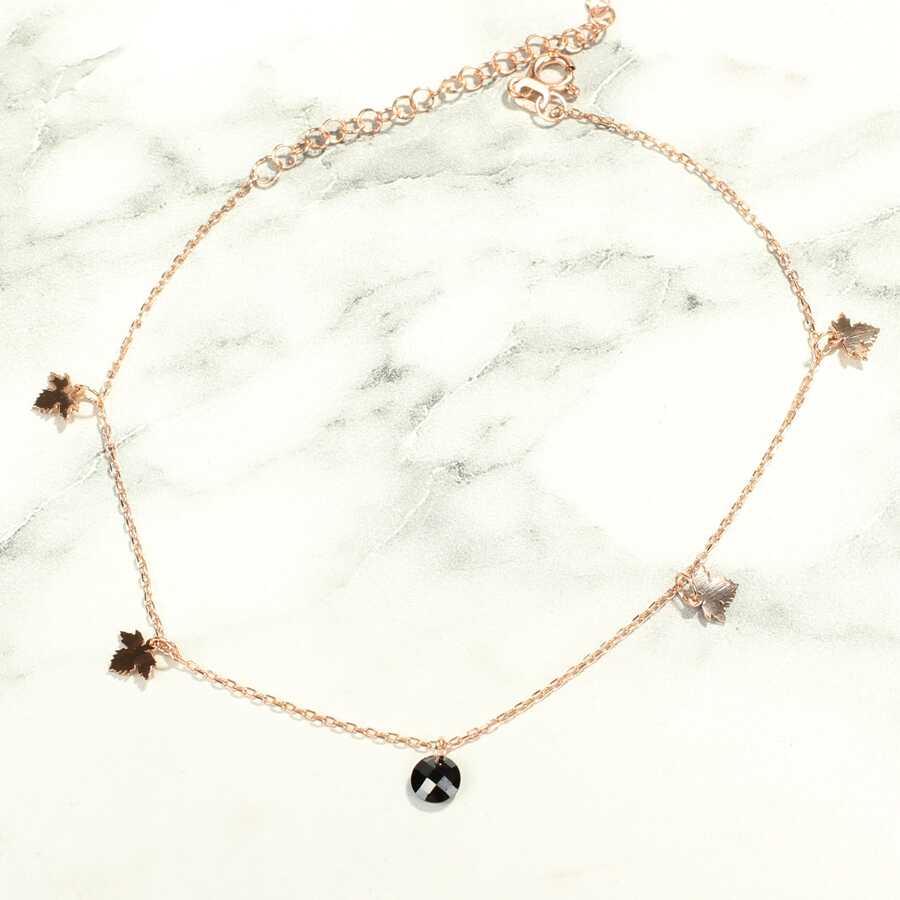 925 ayar gümüştür. Yuvarlak oniks taşlı 4 adet çınar yaprağı modelden oluşan halhalın uzunluğu: 20,5 cm + 5 cm uzatma zinciri vardır. Pembe renktedir. Gramı: 1,77 gr925 Ayar Gümüş Yuvarlak Oniks Taşlı Çınar Yaprağı Model Halhal