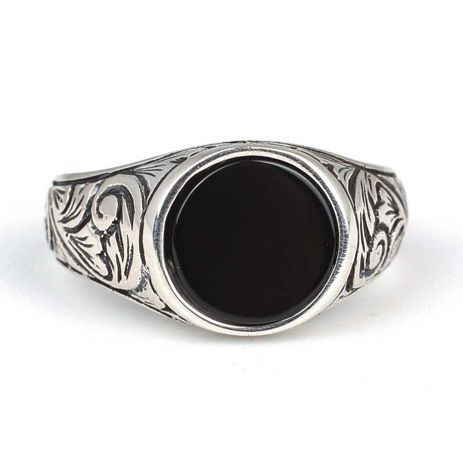 925 Ayar Gümüş Yuvarlak Oniks Taşlı Erkek Yüzüğü