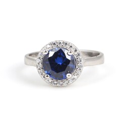 Yüzük 925 ayar gümüşten üretilmiştir. Yuvarlak taşlı anturaj model yüzüğün taşı 0,8 cm boyutlarındadır. Yüzüğün üst kısmı 1,1 cm boyutlarındadır. Resimdeki yüzük 17 ölçüdür, ancak tüm ölçüler yapılabilmektedir. Yüzük zirkon ve safir renk taşlıdır. Ağırlığı 3,32 gramdır.