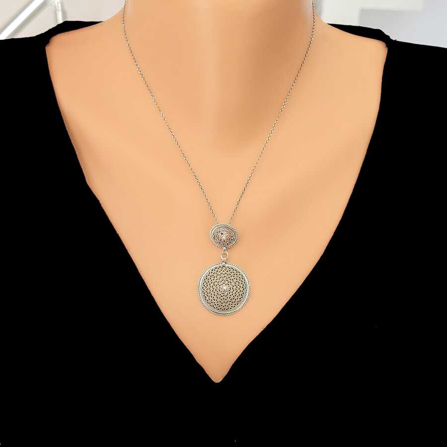 925 Ayar Gümüş Yuvarlak Telkari Örümcek Ağı Model Kolye
