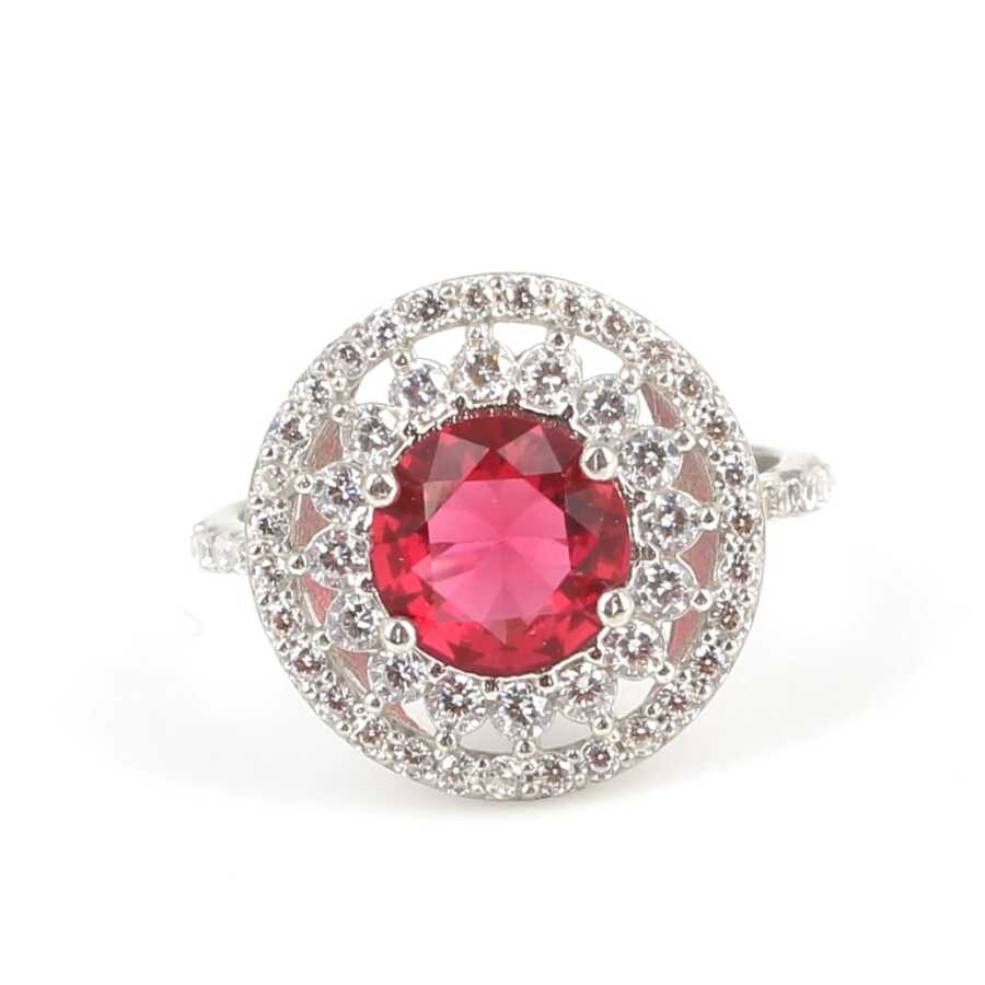 Notify me when its in stock Gümüş yüzük 925 ayar gümüşten yapılmıştır. Yuvarlak çift sıra anturaj model yüzüğün üst kısmı 1,6 cm boyutlarındadır. Yakut renk taşı 0,8 cm boyutlarındadır. Küpe beyaz ve yakut renk zirkon taşlıdır. Yüzük 13 ölçüdür. Tüm ölçüler yapılabilmektedir. Ağırlığı 3,66 gramdır.