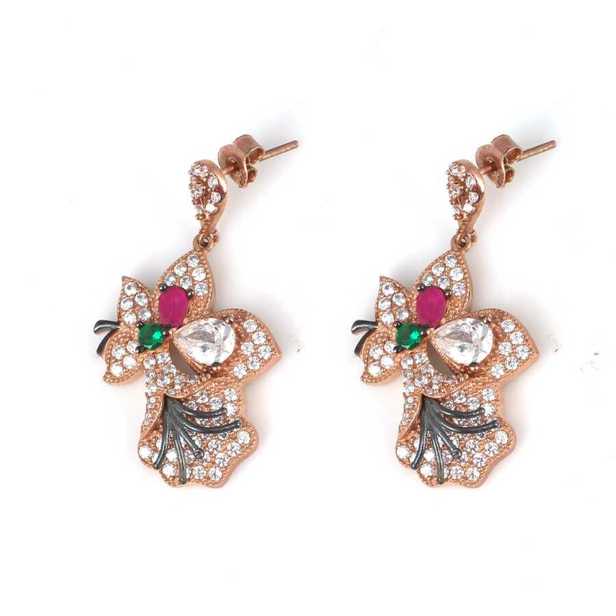 925 Ayar Gümüş Zambak Motifli Zirkon Taşlı Küpe