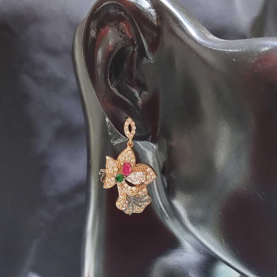 Gümüş küpe 925 ayar gümüşten yapılmıştır. Zambak şeklindeki taşlı küpe 2,0 cm'ye 3,8 cm boyutlarındadır. Küpe beyaz, kırmızı ve yeşil renk zirkon taşlıdır. Ağırlığı 9,49 gramdır.