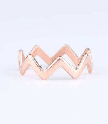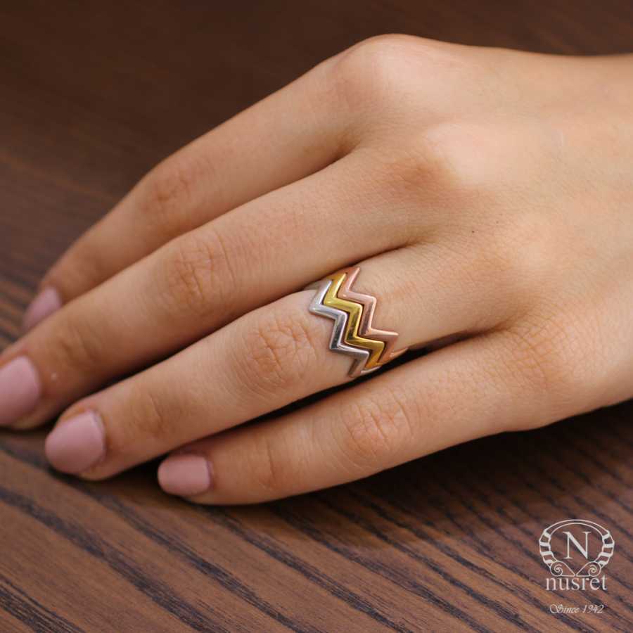 Yüzük 925 ayar gümüşten üretilmiştir. Zikzak şeklindeki yüzük 14 ölçüdür. Tüm ölçüler yapılabilmektedir. Yüzük taşsızdır. Zikzak yüzük 0,6 cm kalınlığındadır. Rose rodaj kaplama yapılmıştır. Ağırlığı 1,45 gramdır.