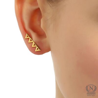 925 Sterling Silver, White Gold Plated, Triangles Designed Ear Cuffs/Climbers- Size: 0,5 x 2,3 cm - Weight: 1,5 g