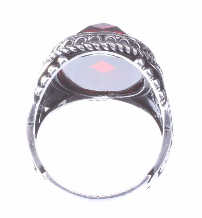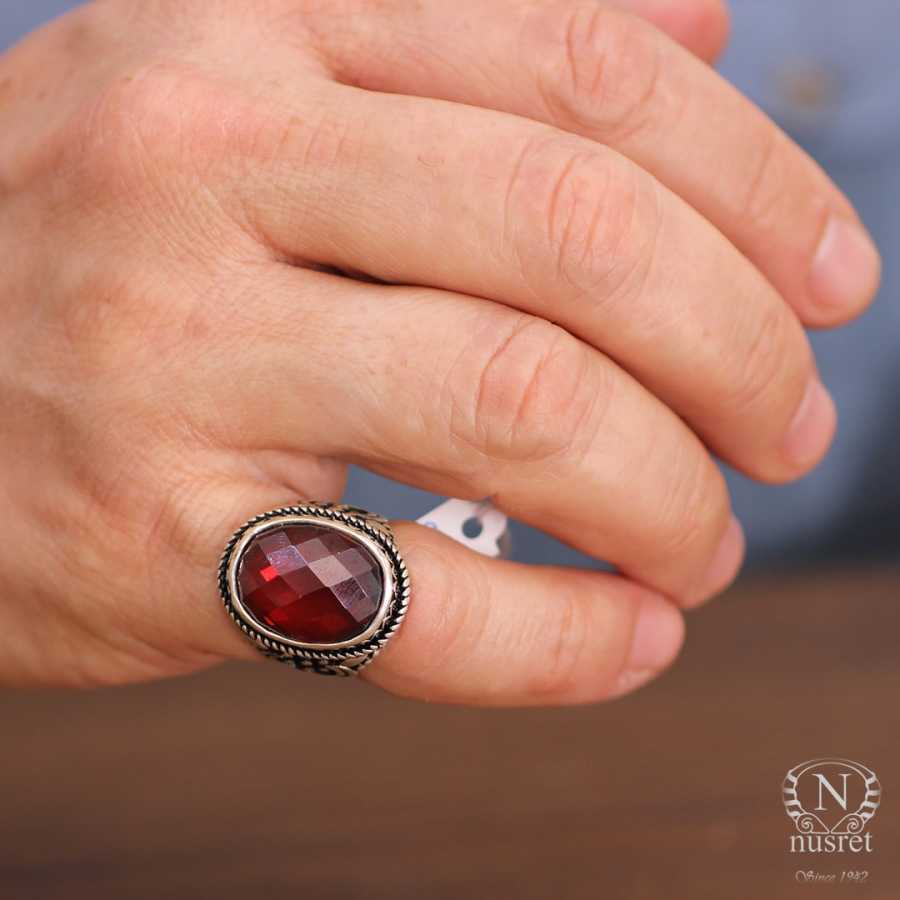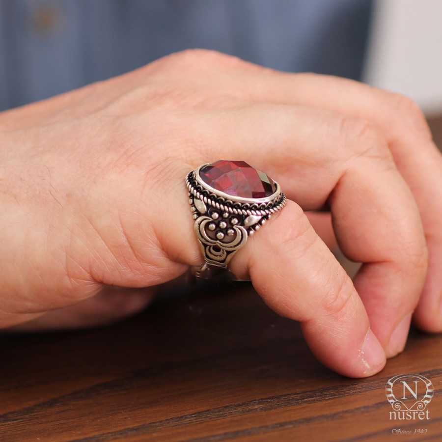 Yüzük 925 ayar gümüşten üretilmiştir. Taşlı yüzük 2,4 cm'ye 1,6 cm boyutlarındadır. Resimdeki yüzük 16 ölçüdür, ancak tüm ölçüler özel olarak yapılabilmektedir. Yüzüğün kollarında üç hilal figürü vardır. Yüzük kırmızı renk taşlıdır. Ağırlığı 12,29 gramdır.