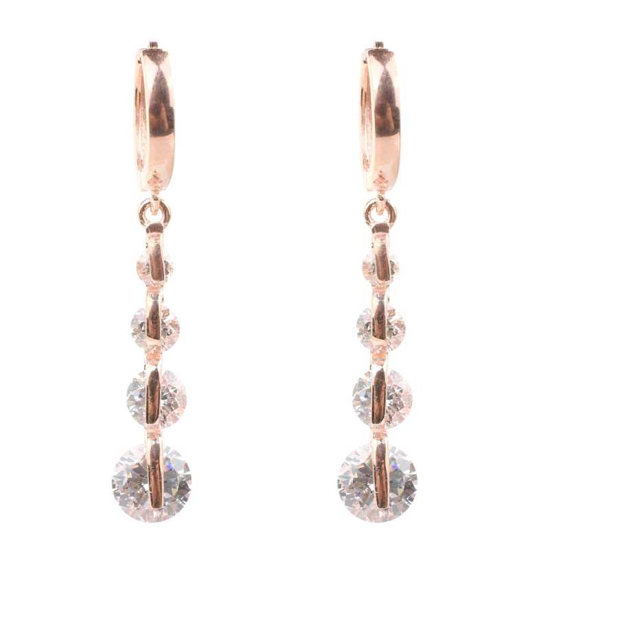 Gümüş küpe 925 ayar gümüşten yapılmıştır. Süzme model sallantılı küpe 1,3 cm'ye 3,8 cm boyutlarındadır. Küpe rose renk zirkon taşlıdır. Ağırlığı 4,32 gramdır.