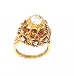 925 Ayar Gümüş Kubbe Şeklinde Kırmızı ve Beyaz Zirkon Taşlı Yüzük